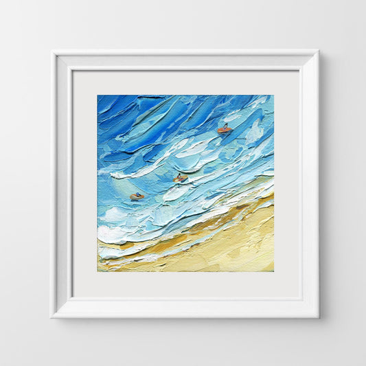 Beach Surf Oil Painting Original Blue Seascape Wall Art Ocean Impasto Palette Knife Art Coastal Gift for Beach Lovers
