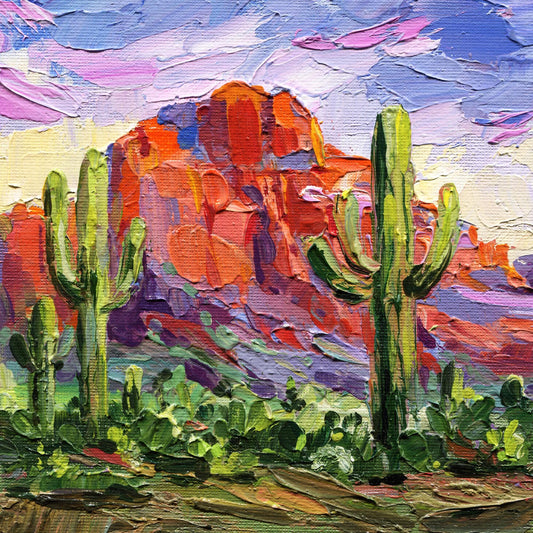 Grand Canyon Painting – Colorado Desert Landscape – Original Arizona Art – Cactus Impasto Artwork – Travel Wall Decor
