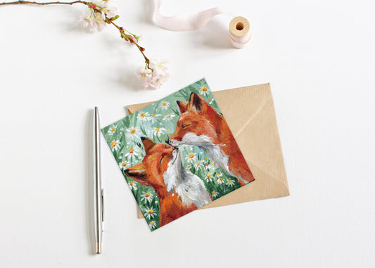 Fox Couple Painting. Two little foxes. Hand-Painted Mini Canvas, Romantic Fox Art, Woodland Animal Decor Cute 4x4in, Gift, Original Artwork