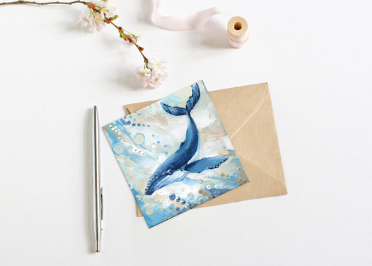 Whale Painting. Hand-Painted Mini Canvas, Ocean Animal Art, Marine Life Decor, Coastal Art 4x4 in, Gift Small Original Hand-Painted Artwork