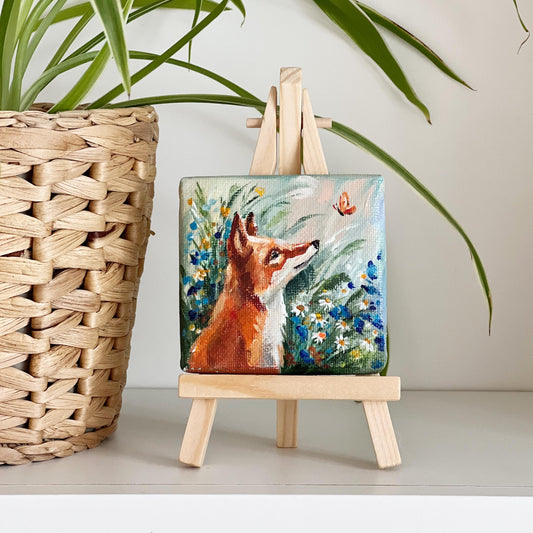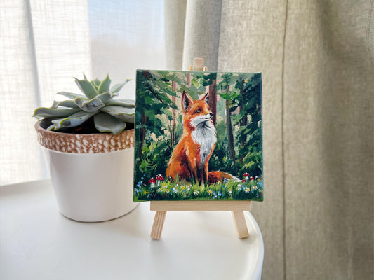 Fox Painting. Hand-Painted Mini Canvas, Woodland Animal Art, Forest Nature Decor, Wildlife Gift 4x4in, Gift, Original Artwork
