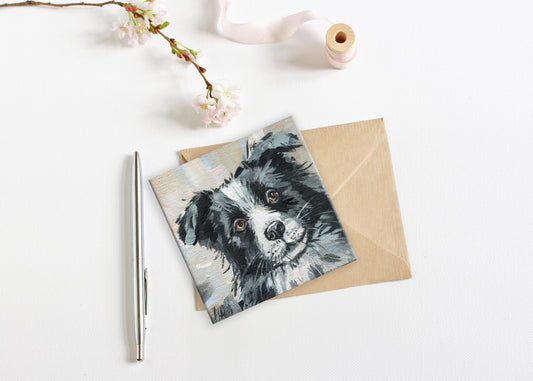 Border Collie Dog Painting. Hand-Painted Mini Canvas, Black and White Dog Art, Small Pet Portrait Original Hand-Painted Artwork. 4x4 Inch