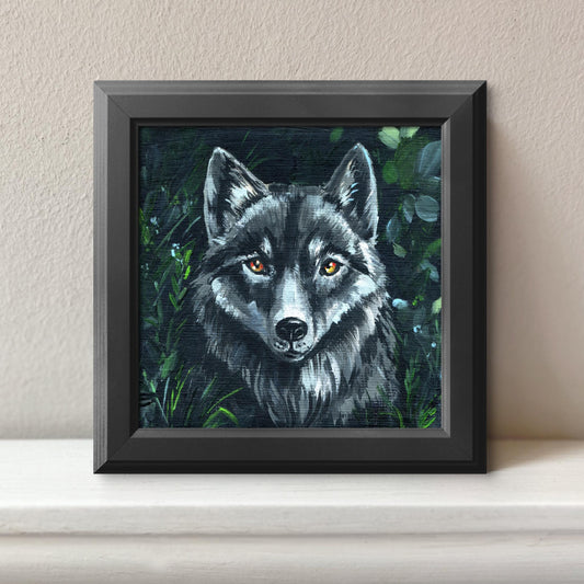 Wolf Original painting on canvas. Forest wildlife hand-painted mini canvas, Woodland animal art, Nature Decor, Gift 4x4in, Original Artwork