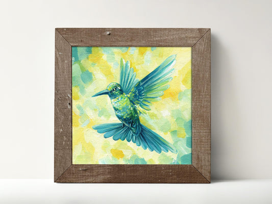 Hummingbird painting 15x15 cm. Small bird art on canvas. Colorful tropical wall decor. Original hand-painted fine art gift. Animal Artwork