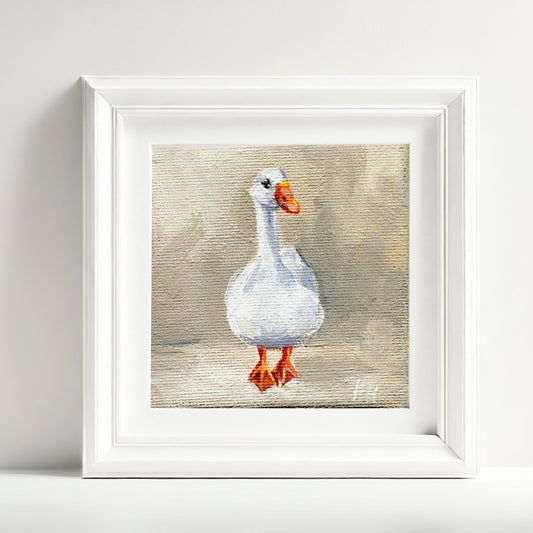 Goose Painting on Mini Canvas – Original 3x3 Acrylic Artwork – White Goose Wall Art – Tiny Animal oil Painting Farmhouse Decor