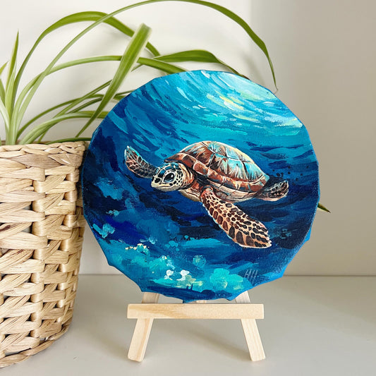 Sea Turtle Painting Original Art | Ocean Animal Acrylic Artwork | Marine Life Wall Decor 15 cm Hand-Painted Canvas | Coastal Beach Home Gift