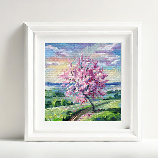 Cherry blossom, Sakura. Spring Blossom Tree Painting, Original Mini Canvas Art, Pink Floral Landscape. Gift for girls, sisters. Home Decor