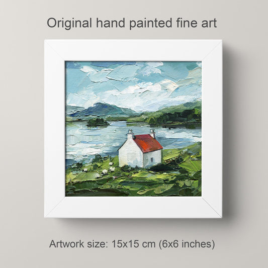 Scotland Oil Painting | Scottish Countryside Cottage Impasto Art | Original 6x6 in Oil Wall Decor | Rural Landscape House ArtworkRegular price $112.00 USDRegular priceUnit price per-
