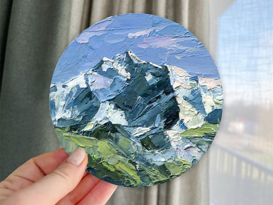 Makalu Mountain Oil Painting – 6x6 Inch Round Impasto Art – Himalaya Landscape – Textured Palette Knife PaintingRegular price $99.00 USDRegular priceUnit price per-