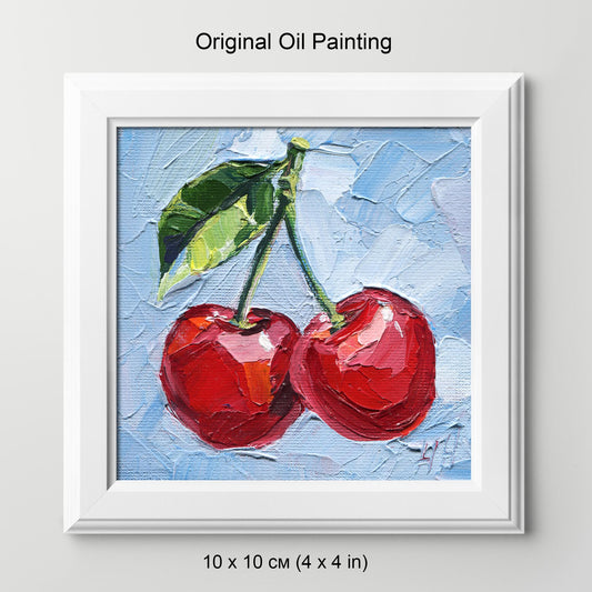 Original Cherry Oil Painting - 4x4" Fruit Wall ArtRegular price $84.00 USDRegular priceUnit price per-
