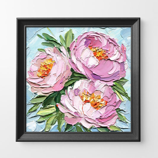 Peony Oil Painting – 6x6 Inch Impasto Floral Art – Blush Pink Peonies on Beige – Textured Flower Wall DecorRegular price $112.00 USDRegular priceUnit price per-