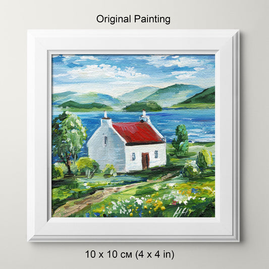 Scotland Original Painting | Scottish Countryside Cottage Impasto Art | Original 4x4 in Acrylic Wall Decor | Rural Landscape House ArtworkRegular price $79.00 USDRegular priceUnit price per-