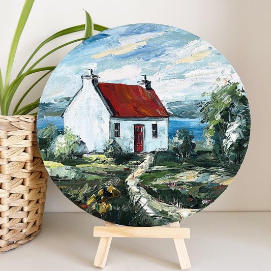 Irish Cottage Painting – Round Impasto Art – White House Landscape – Ireland Countryside Original – Rustic Wall Decor. Scotland Oil artRegular price $149.00 USDRegular priceUnit price per