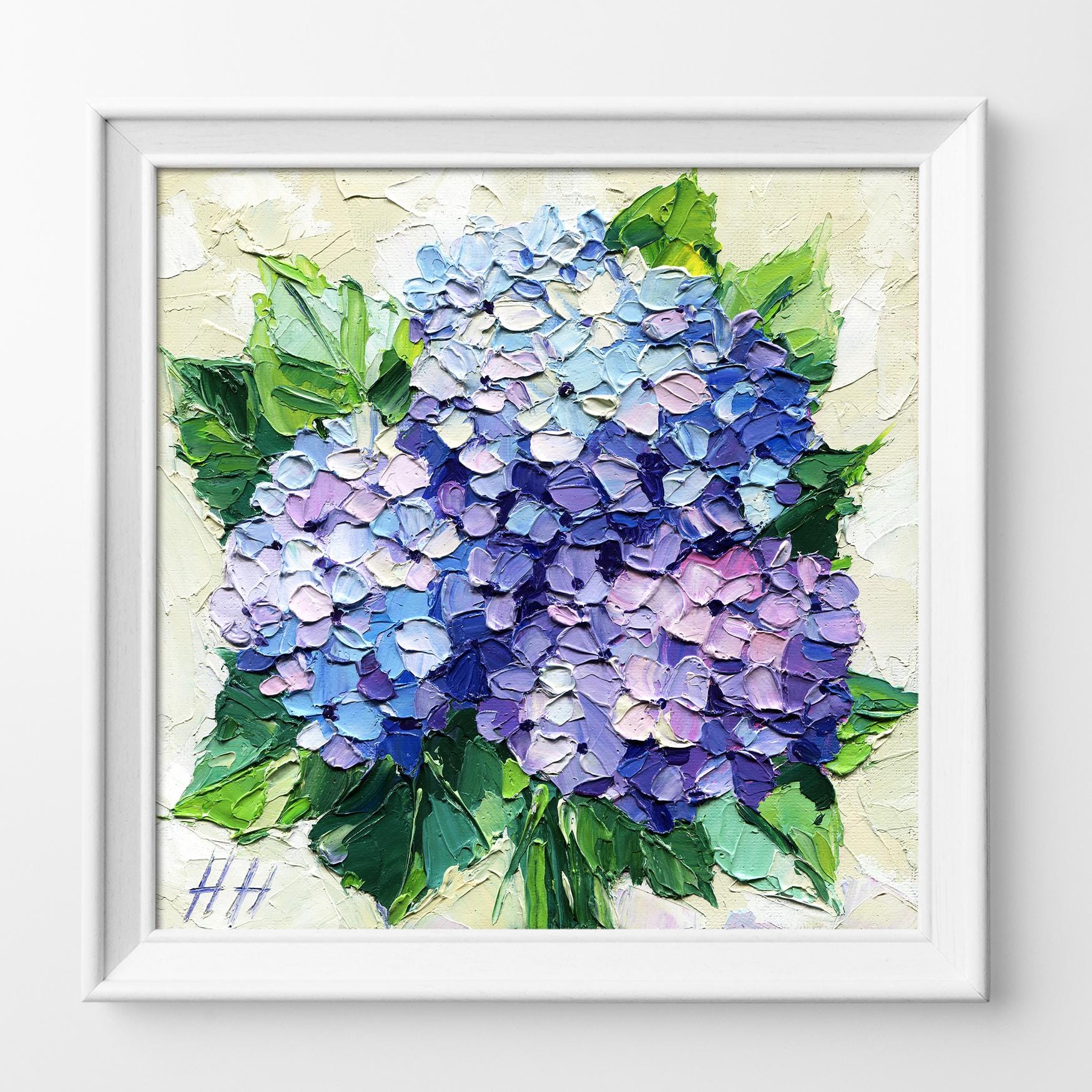 Hydrangeas remind us of grandmother's gardens, quiet summer afternoons, and the simple joy of watching flowers bloom. This painting captures that timeless beauty and brings it into your home.