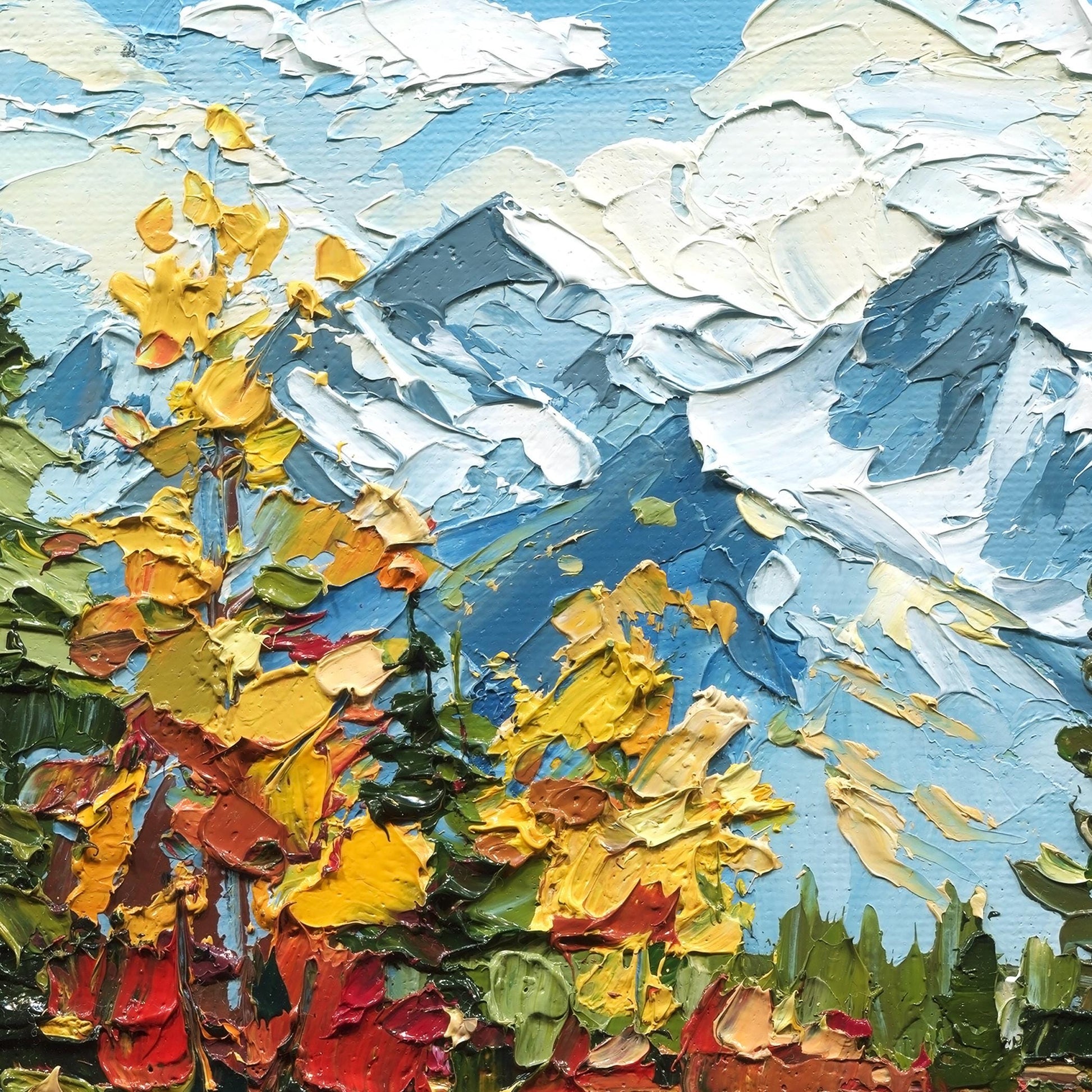 Immerse yourself in the vibrant beauty of autumn with this original impasto painting inspired by Rocky Mountain National Park. Crafted using a palette knife technique, this landscape art captures the golden aspens, snowy peaks, and deep green pines in rich texture and vivid color. Perfect for lovers of mountain landscapes and those seeking a unique piece of original art to brighten their space.