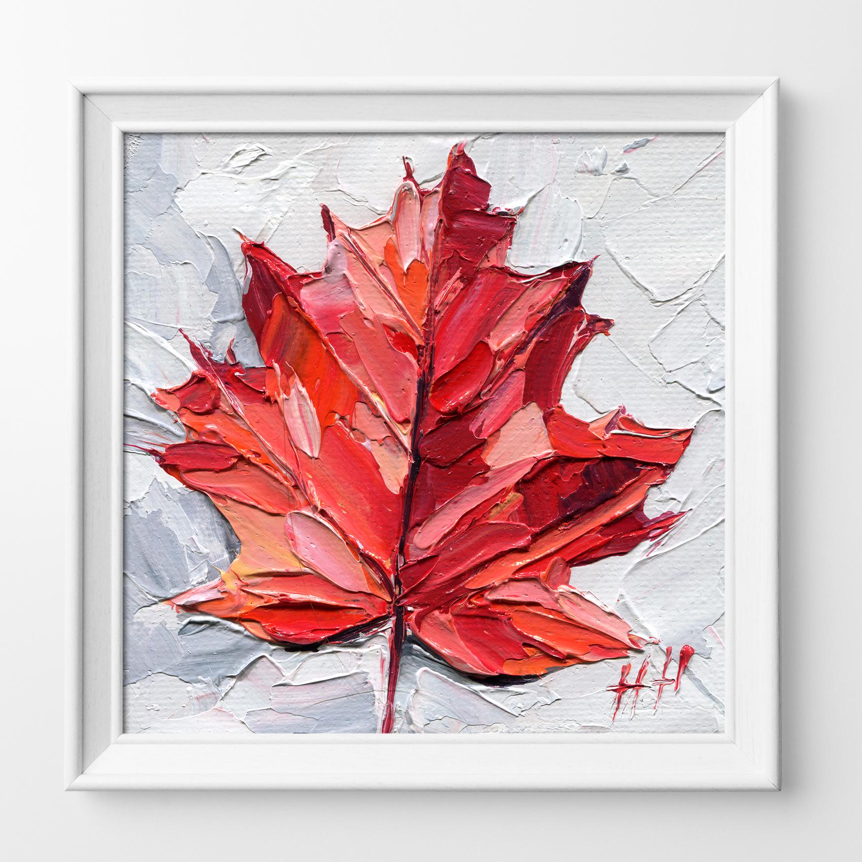 Red Maple Leaf — Impasto Oil Painting, 4×4 in (Original)